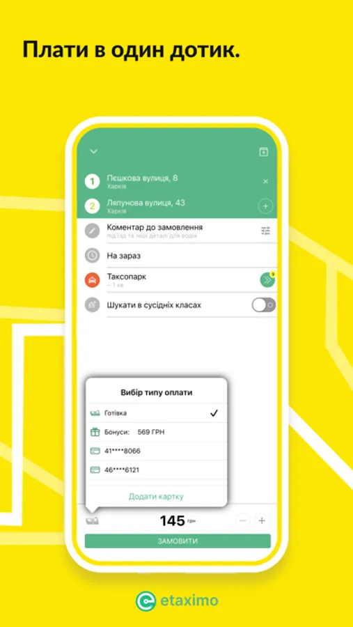 To pay for your rides you can add your payment card to the app through secure MasterPass wallet from MasterCard and use this card later on with Etaximo or any other app that supports MasterPass. You can as well just pay in cash for your taxi ride.