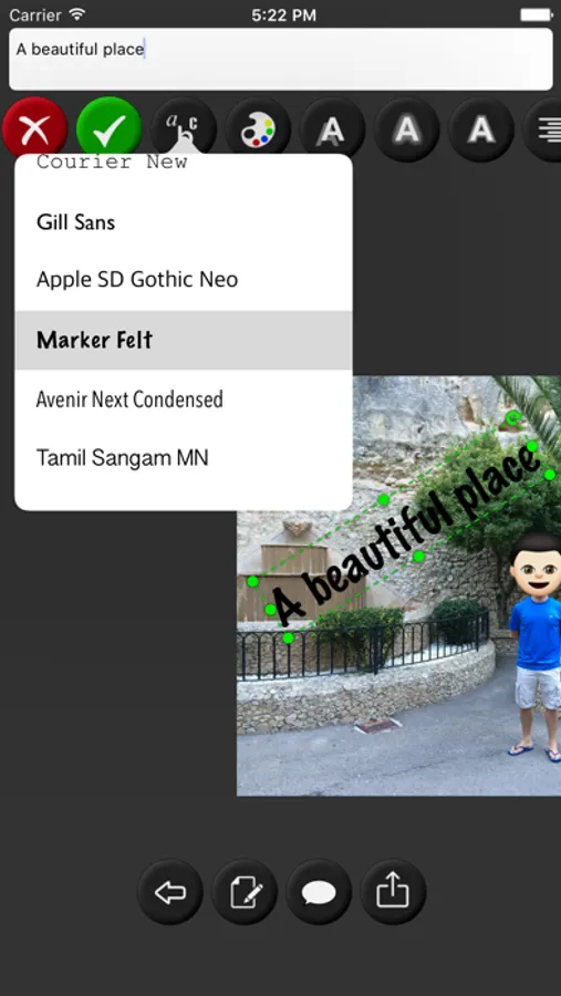 Write texts in your pictures using a wide variety of fonts. You can easily resize, color or apply some cool effects to them.