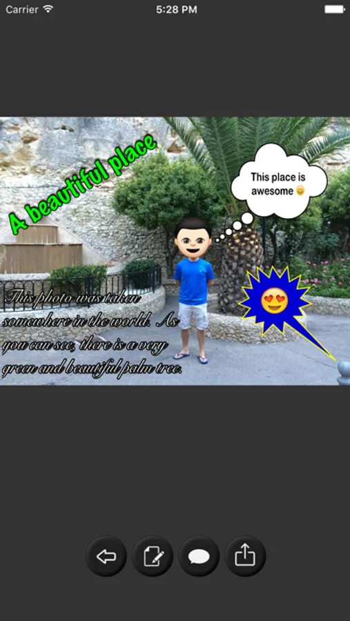 Besides, you can add speech balloons and many other figures to your photos.