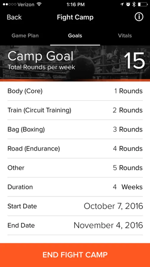 - Build a Fight Camp based on workout goals (“Rounds”)