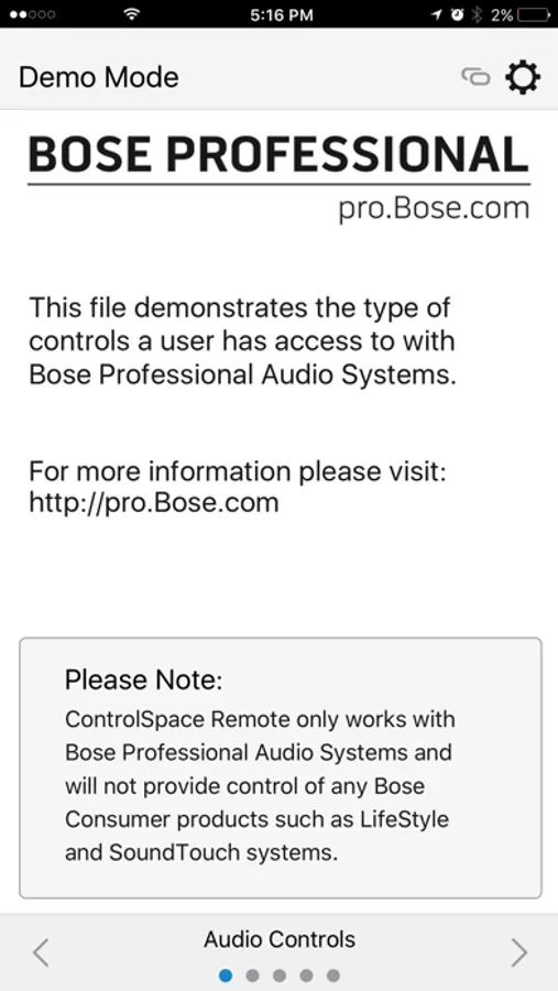 Designed for end-user control of audio systems using Bose® Professional networked products, the ControlSpace® Remote app provides intuitive and personalized wireless control for increased convenience and utilization of installed sound systems.