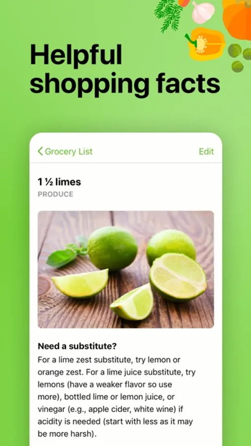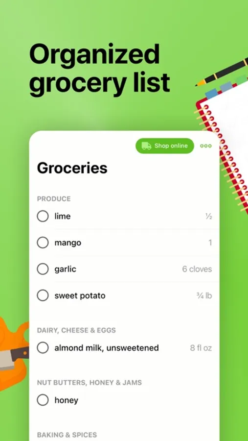 1. Stress-free Grocery Shopping: Create a new meal plan and we'll auto-generate a grocery list for all your weekly needs. Shop in-store with your iPhone or finish your grocery shopping from your phone within minutes. Supported by leading grocery retailers.