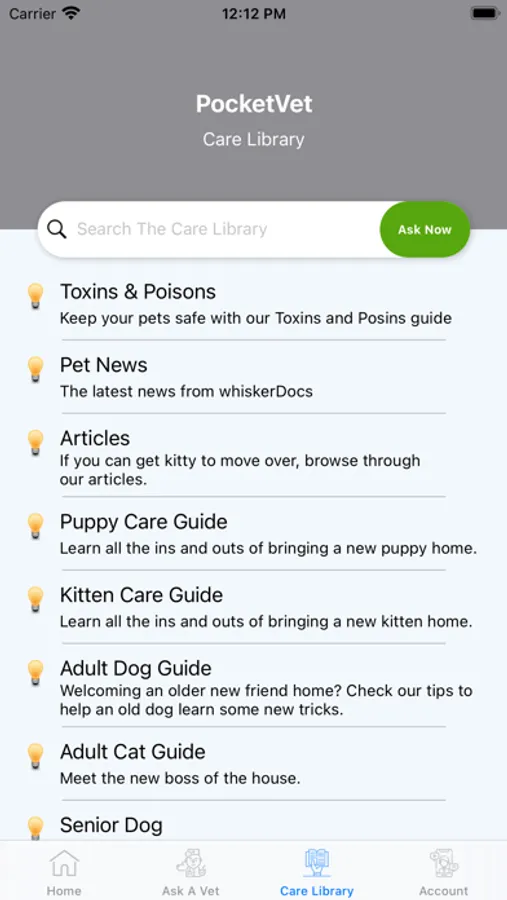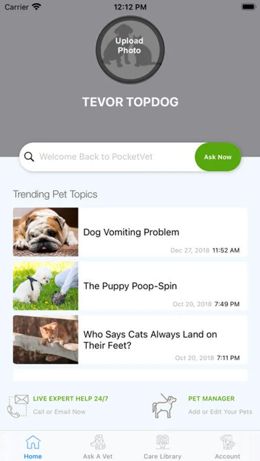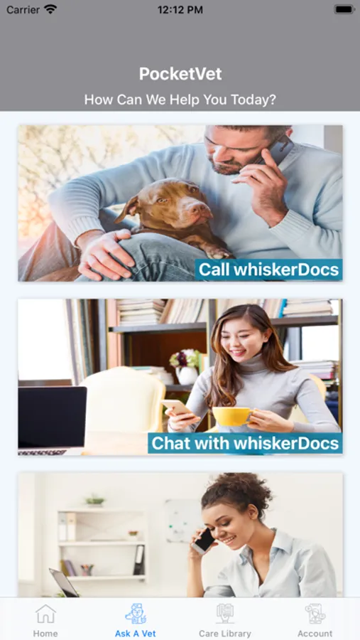 You can optionally purchase a whiskerDocs subscription for direct 24/7 access to veterinary experts. Dog and cat health problems can pop up at any time - it’s great to have a trusted veterinary resource that’s always available. Pocket Vet provides an easy way to call, chat, or send a message to the whiskerDocs veterinary expert team.