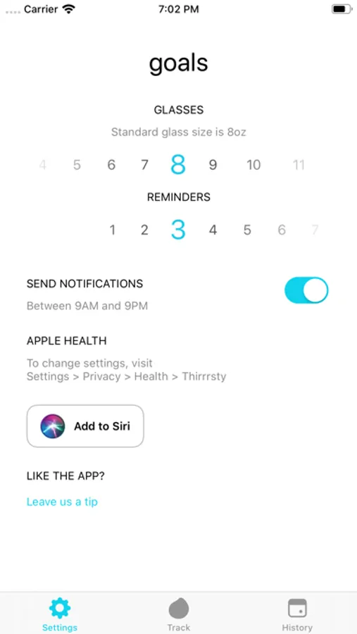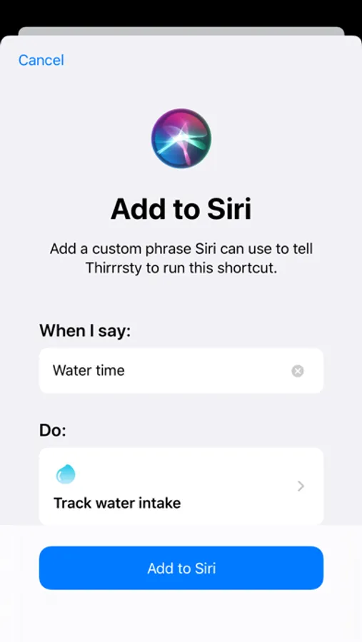 - Record a personalized phrase, and you'll be able to log your water intake simply by asking Siri