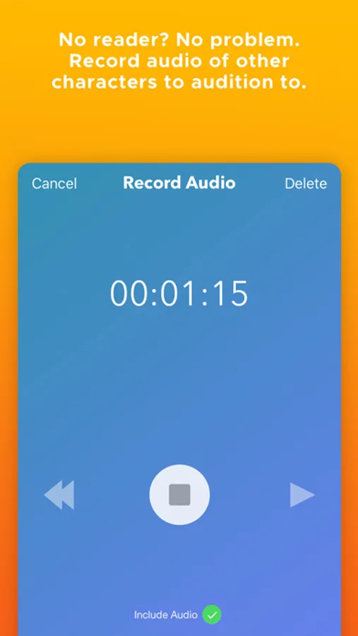 If you don't have someone to read with Slatable lets you record audio of the other lines so you can play them back when you record a take. It's best to have someone to read with but if you don't, Slatable has you covered!
