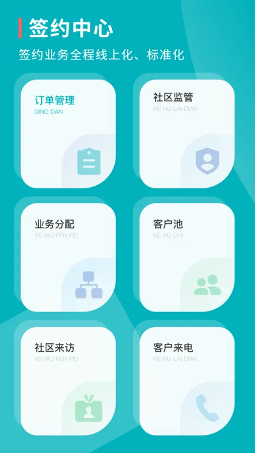 2、签约中心:买卖、租赁签约业务全流程线上化,快速线上支付、过户办件等为物业提供专业化房产服务。