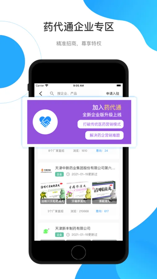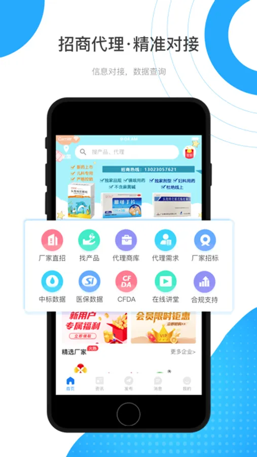 药品、器械耗材、营养品、保健品、消卫产品、医疗服务应有尽有,助您寻找商机人脉。