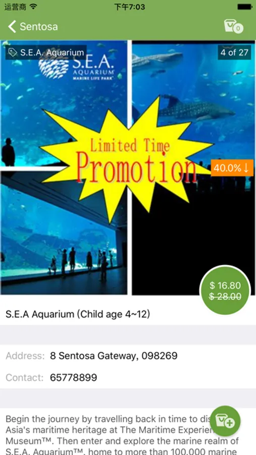 We sell all the Singapore Attractions' tickets at at a very low price. What's more, we can delivery the tickets to you freely !