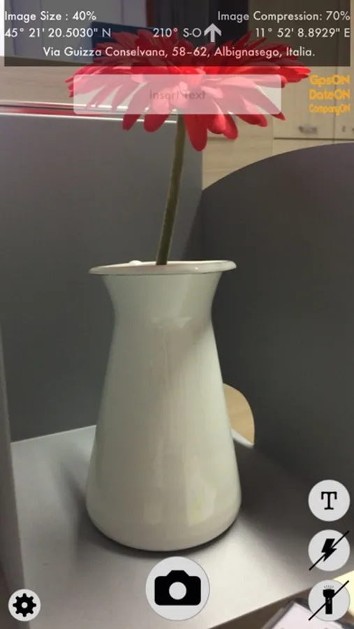 - Function GEOLOCATION and possibilities to stamp GPS data, DATE AND TIME, COMPASS, ADDRESS and custom name directly on every shot/image: