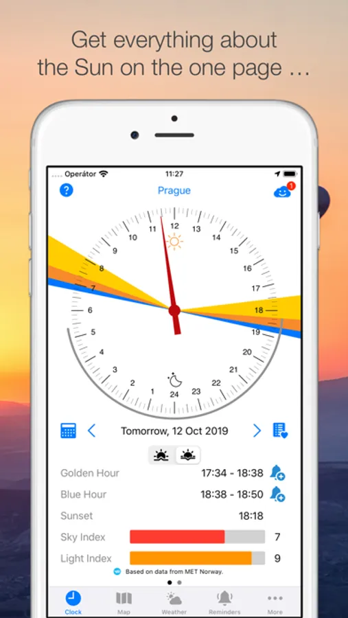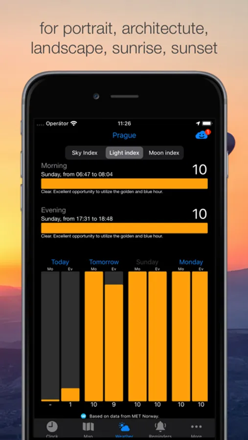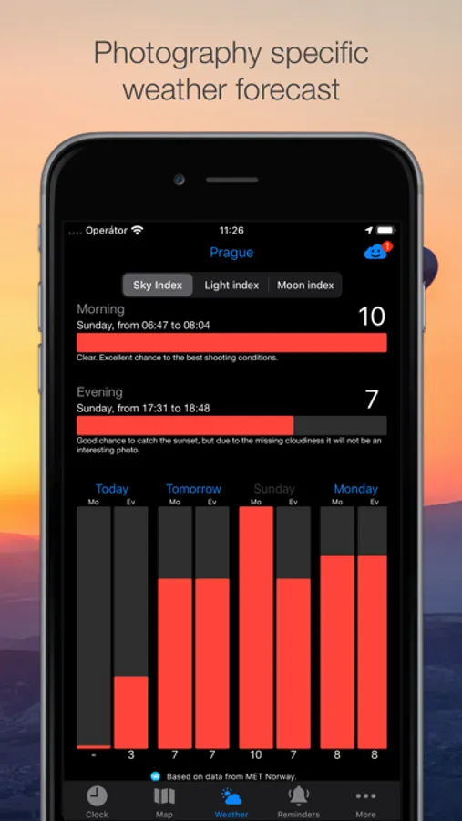 • Sky Index - predicting the chance for a dramatic photo of sunrise or sunset.