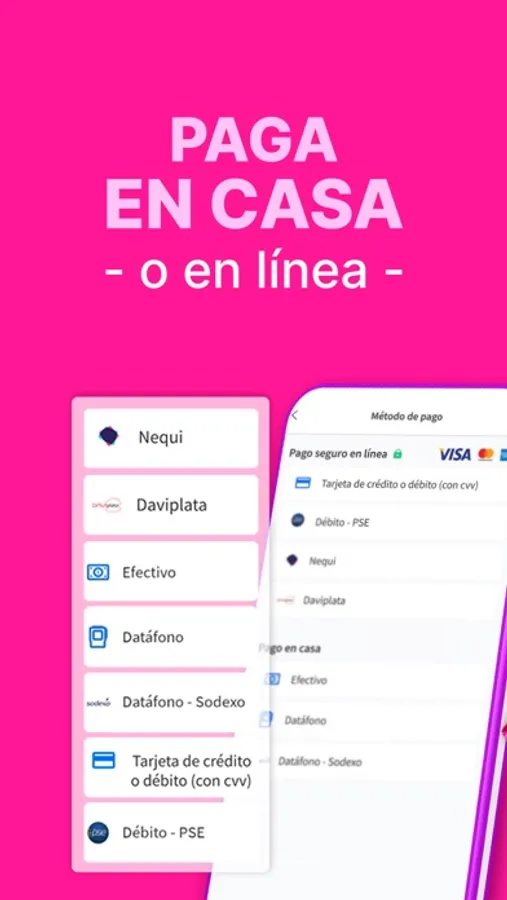 Además, con nuestros aliados pagas en línea y si pides mercado o express puedes pagar con efectivo, contra entrega, en línea, datáfono, Sodexo o Codensa y lo mejor es que todo lo recibes siempre en la puerta de tu casa.