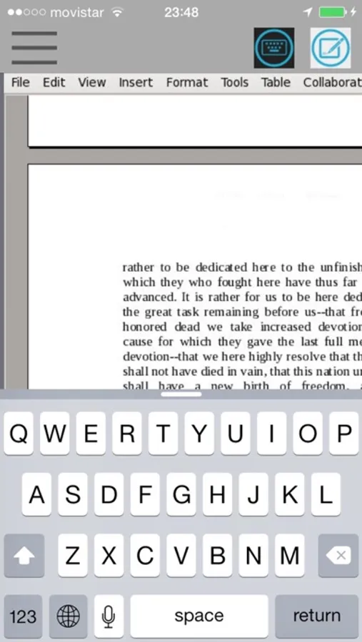 DocsOpen is an adaptation for iPhone and iPad of the app AbiWord, which is a free word processing program similar to Microsoft Word. It is suitable for a wide variety of word processing tasks. It supports both basic word processing features such as lists, indents and character formats, and more sophisticated features including tables, styles, page headers and footers, footnotes, templates, multiple views, page columns, spell checking, and grammar checking.