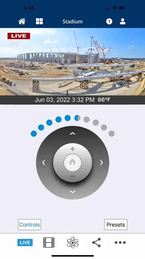 EarthCam’s Control Center 8 app provides easy access to live streaming video that you control via swipe, pinch, pan, tilt and zoom. Access presets and wiper functions as well as 360 degree panoramic views anytime, anywhere.
