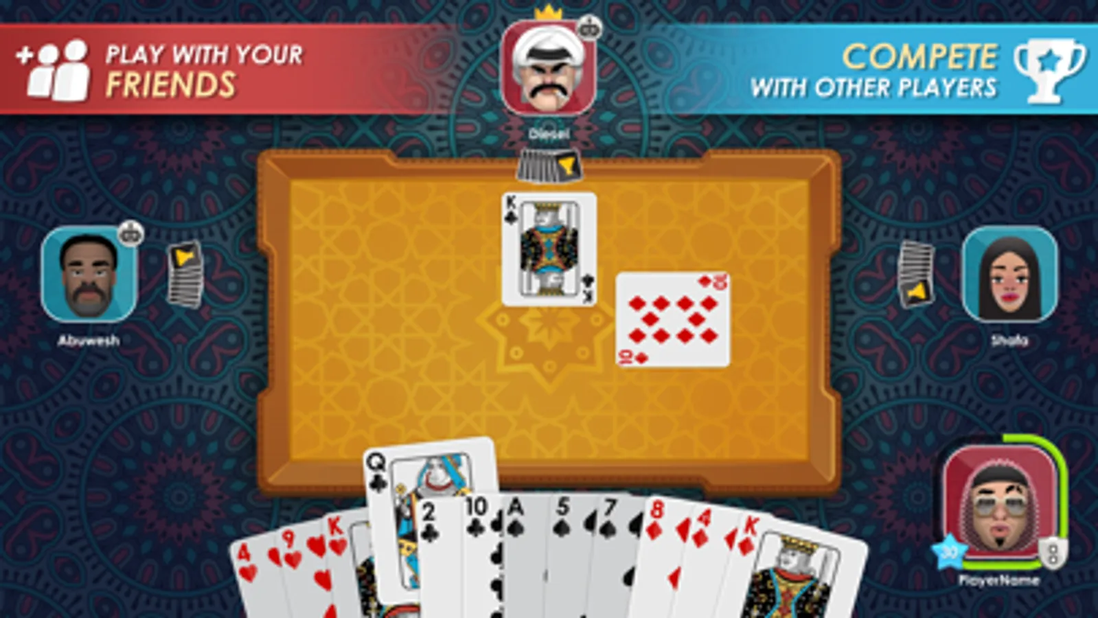 Diwaniya Labs is proud to present iTrix: the mobile version of Trix (Trex), a competitive four-player card game offered in its classic form as well as some more interesting game types!