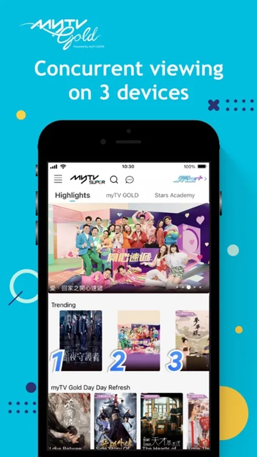 With one myTV SUPER account, you can watch desired programs concurrently via mobile, tablet and computer.