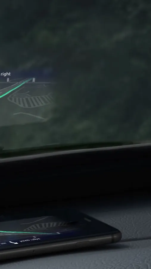 Set your destination, select the route and place your phone on the dash — to see the route reflected on your windshield. Keep your eyes on the road and know in advance what’s ahead — a straight run, or a sharp turn. The dark windy unknown roads become more predictable this way.