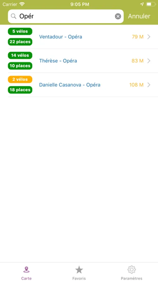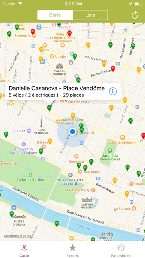 Grâce à la fonction "favoris", vous pourrez garder en mémoire vos stations favorites. Ainsi, vous pourrez consulter en un clic l'état et le stock de la station.