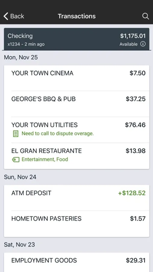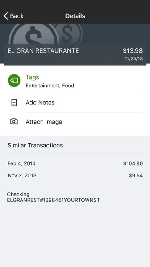 Add Tags, Notes, Images & Geo-Information: By enhancing transactions with custom tags, notes or photos of a receipt or check, you have the ability to stay organized and find exactly what you’re looking for when searching through your finances.