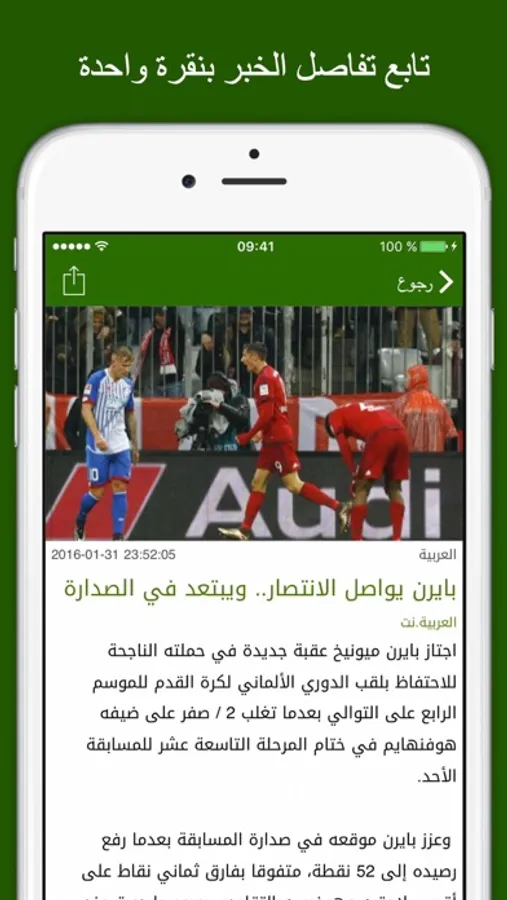 - هذا التطبيق يختلف كليا عن كل التطبيقات الأخرى من حيث سرعة الأخبار و تحميل الخبر الكامل و ليس المقتبسات فقط.