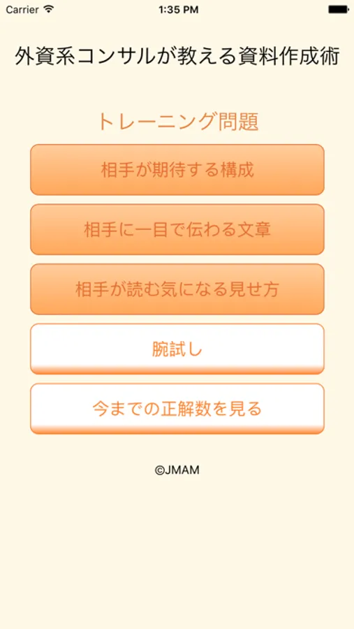 (株)日本能率協会マネジメントセンターが販売する通信教育コース『外資系コンサルタントが教える資料作成術』を効果的に学習するためのトレーニングアプリ。