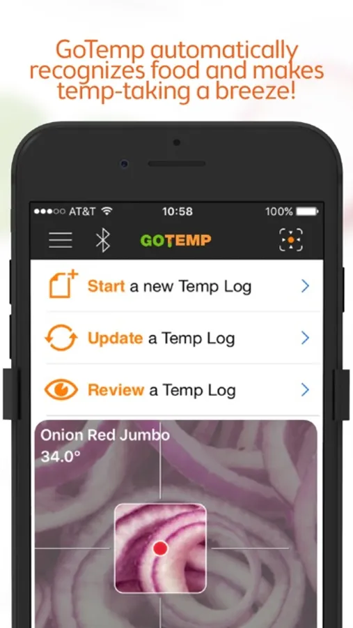 • Just tap to auto-recognize the food item and log temps