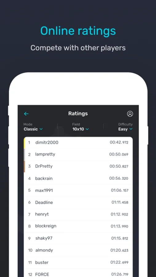 - Several difficulty levels and field sizes. Improve your skills by trying different variations of the game;