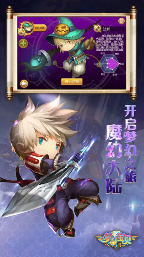 梦幻大陆,布卡布雷帝国建国672周年,具有“魔法之巅”之称的魔法学院在黎明修道院圣骑士的帮助之下,成功找到了失传已久的转生力量。学院的魔法师们为了让帝国更加强大,便将这种力量无偿的交予帝国,希望能够借助这种力量让人类整体实力迈上一个新的台阶。 在这种力量的影响下,大陆生态产生了巨大变化,一些动物、植物在这种力量的影响下发生了魔化,成为了魔物,那些已经安息了的亡魂也纷纷从地底来到陆地之上,甚至连远古龙族都因为这种能量而变的暴躁。魔物们袭击人类,糟蹋田地,对整个大陆产生了极其恶劣的影响。 正当帝国准备大举绞杀这些魔物之时,寂静之森的刺客们却发现,这类魔物是可以驯服的,一旦驯服之后,它们将会成为人类的强大战斗助力。于是,一种圈养魔物的风潮开始在大陆之上流行起来。久而久之,人类与圈养魔物之间的感情渐渐的发生了质的变化,魔物成了人类忠实的朋友,甚至在战场上依然能够生死不弃。由于转生力量的带来的利益,大陆上各势力蠢蠢欲动。飞云谷的反叛军首先按捺不住开始对帝国进行袭击,妄图取得这种力量。 帝国最精锐的军团--第三军团一直守护在帝国的北方。虽然帝国拥有魔法学院的法师和黎明修道院的圣骑士们帮助,但没有第三军团的援助,无法与叛军的大部队大面积开战,而天上的众神发现了这种力量,为了防止人界的混乱,神界也出面开始干涉,只有通过神之考验的人,才能获得这种力量。 帝国正面临着前所未有的危机,第三军团,魔法学院,黎明修道院,寂静之森这些势力逐渐登上了历史舞台,终其原因,是为了追求更强大的力量。人呐,究竟要掌握多强大的力量,才能将自己的幸福牢牢的抓在手中呢?《魔力II-梦幻宝贝》是一款以魔幻为题材的大型多人回合制角色扮演手机网游。其宠物宝贝,可捕捉,可参战,可交易,让你爱不释手;轻轻松松开个店铺,自己做老板,赚钱也疯狂;组队战胜邪恶力量;工会大战让你和朋友们共同打拼一个自己的地盘;刷副本,团队协同作战,抢装备抢到尖叫;交友,拜师,收徒,结婚,更有最新的事迹系统,让你在感受正常游戏内容的同时获得一份够潮,够炫,够霸气的新追求!让你体味一个叱咤风云的游戏人生。