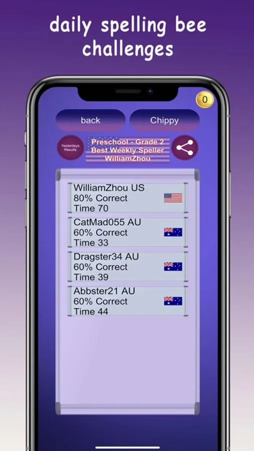 Great spelling bee practice! Standard spelling word lists, Preschool to Grade 6, are also provided but you can make up your own word lists as well as the kids’ spelling homework provided from school. This spelling app for kids is a spelling teacher. You can also link with your class teacher and email your kids spelling and times tables results to them. This app can help improve your kids spelling and times tables test results. The app keeps track of spelling test and times tables results.
