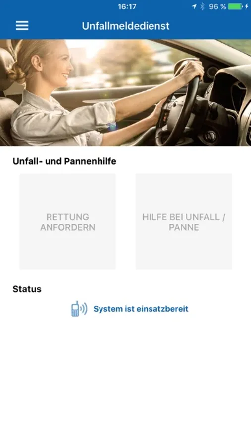 Den Unfallmeldedienst können Sie auch manuell über die App auslösen. Wählen Sie dann einfach zwischen „Rettung anfordern“ oder „Unfall/Panne melden“. In beiden Fällen werden Sie dann mit dem zuständigen Schaden-Team verbunden, das Ihnen weiterhilft. So schicken wir z. B. Rettungskräfte los oder organisieren einen Abschleppwagen.