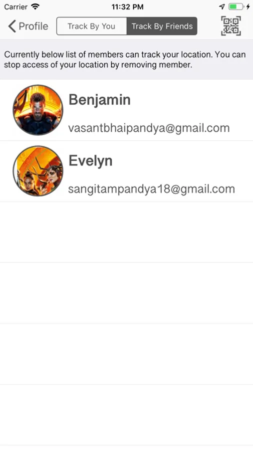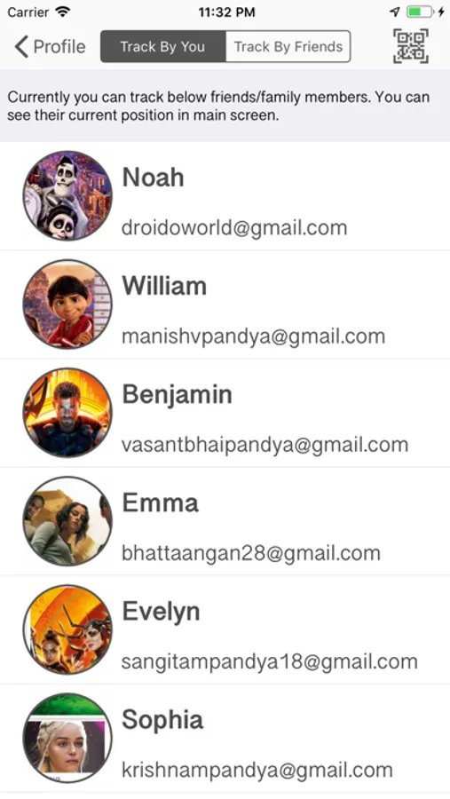 You need to create your own account and share your QR / User Id to whom you allow to track access your location. Same way you need to scan QR / user Id of your family members to get access of their latest location.