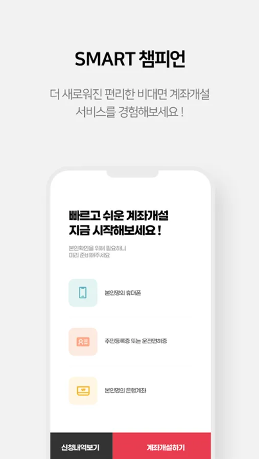 - 카메라 : 계좌개설 신분증 진위여부 확인시 사용
