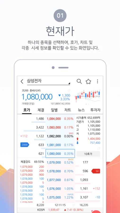 ※ 현재가 : 미체결 잔량 표시, 재무재표, 거래원,
