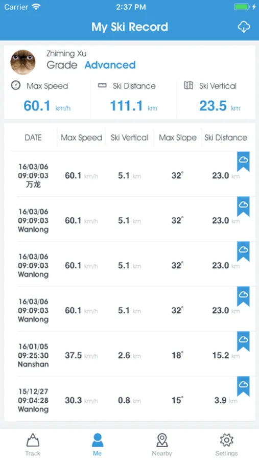 ④The skiing record can be stored in the cloud, and can be downloaded locally by sign in with Apple, without worrying about losing the phone.