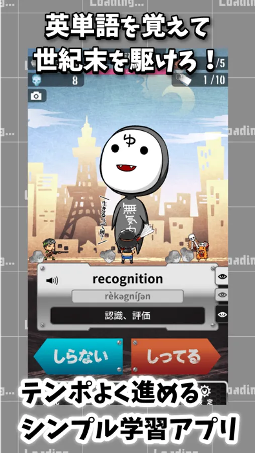 2択の単語問題を解いて進めていく、いたってシンプルなアプリです。