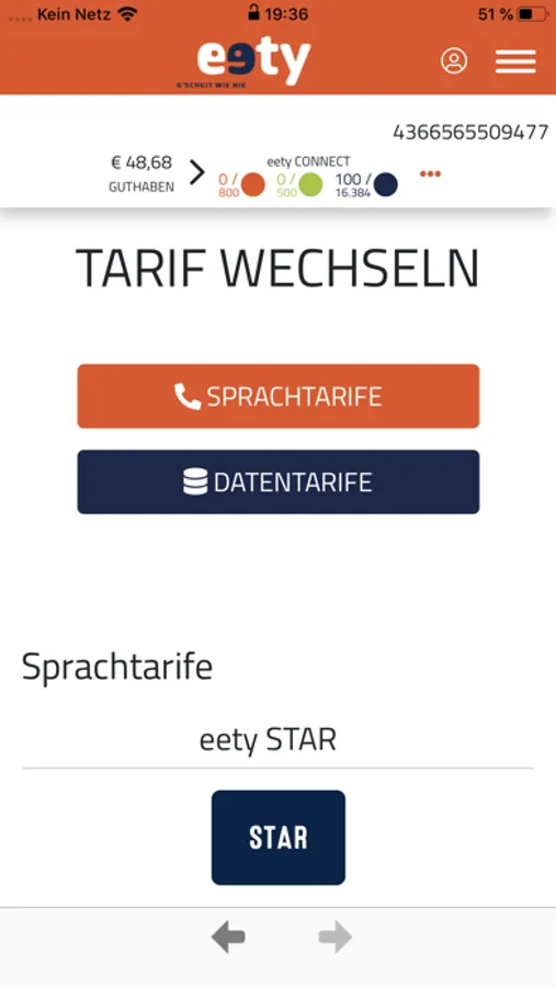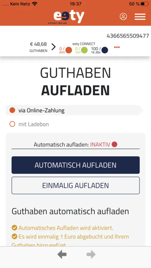 Neben der Übersicht Ihrer verbleibenden Einheiten können Sie auch Tarif wechseln, die automatische Aufladung einstellen und viele weitere Services nutzen.