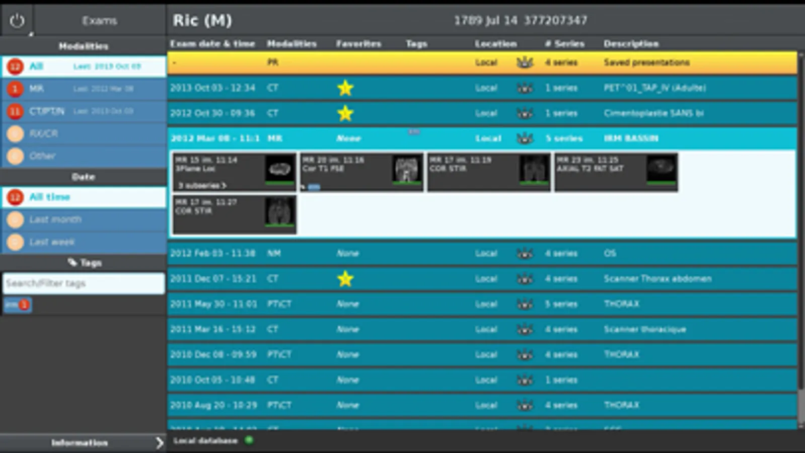 All standard medical image modalities are supported : MR, RX, CT, PET, NM, MG, US ...