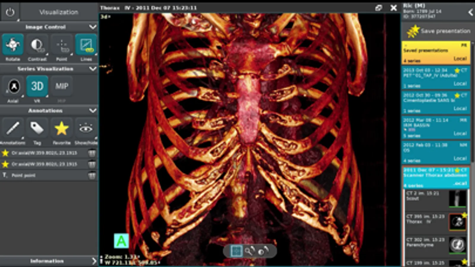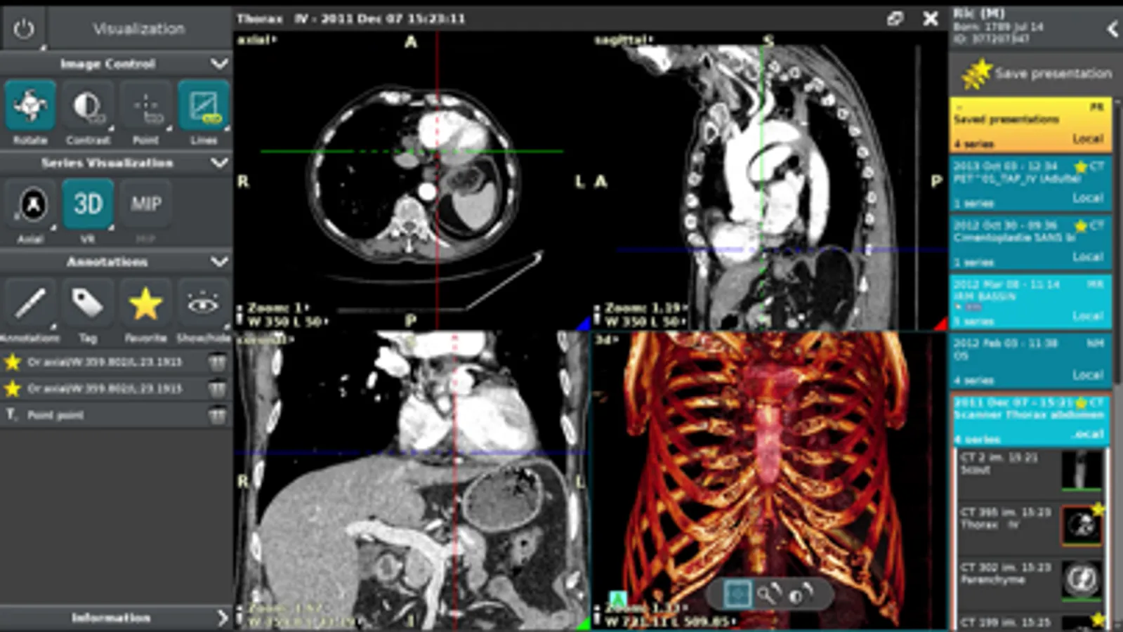 Anywhere Streaming is a DICOM visualization client that connects to Anywhere Server. It provide standard medical image navigation tools surch as : slicing, windowing, MPR, 3D VR, MIP, oblique ...