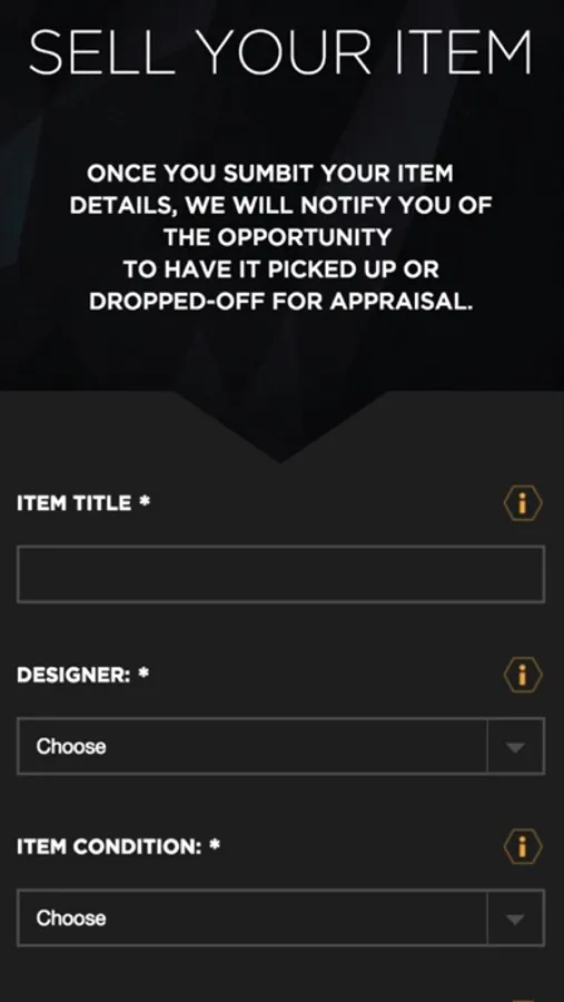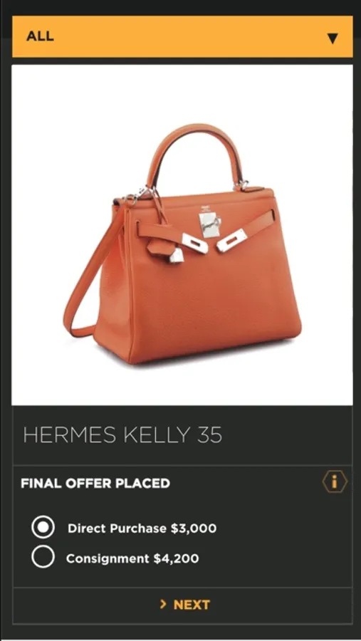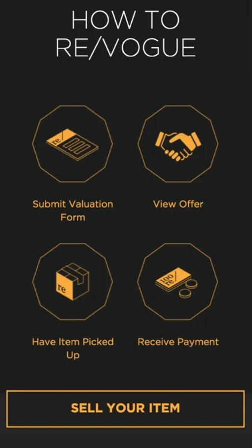 Our approach to selling is seamless and secure, made even more valuable and efficient as the process is performed directly from the Mobile App. Simply follow the steps to sell your luxury items with confidence and ease: submit your valuation form, view your offer, schedule your item to be picked up and…receive your payment!