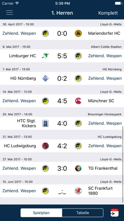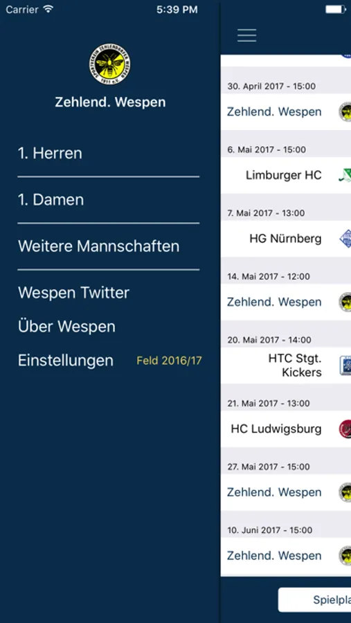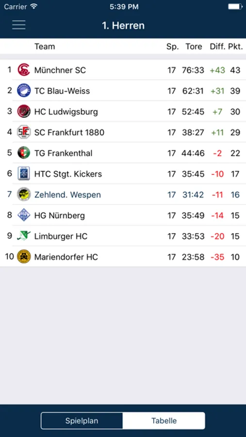 for the "Zehlendorfer Wespen" hockey club. So far, the app supports the following teams for both indoor and outdoor series: