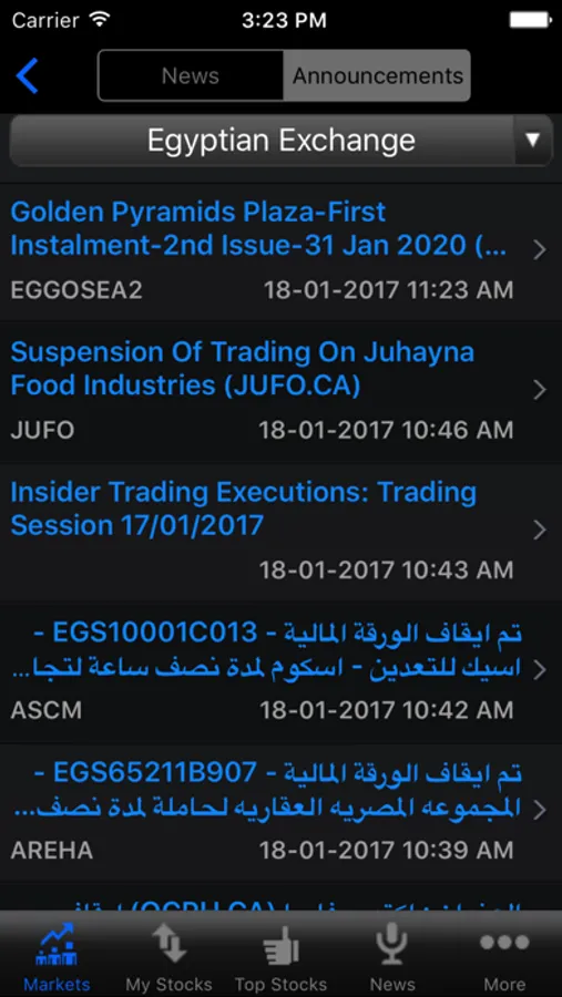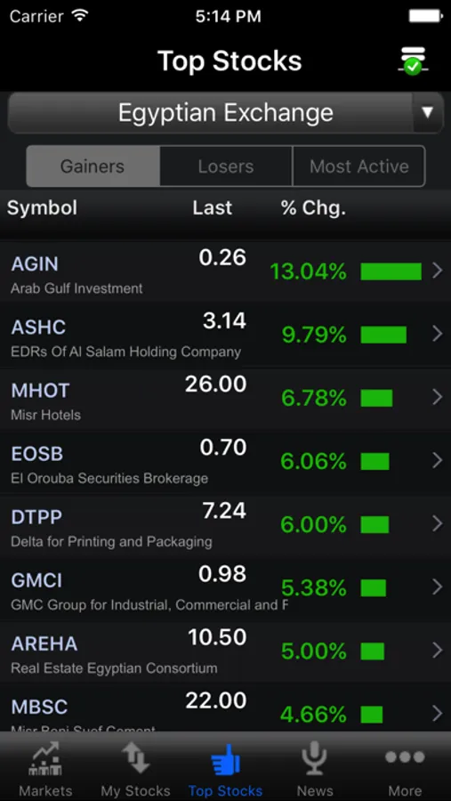 • View Top Stock information for subscribe markets including top Gainers, top Losers and most active
