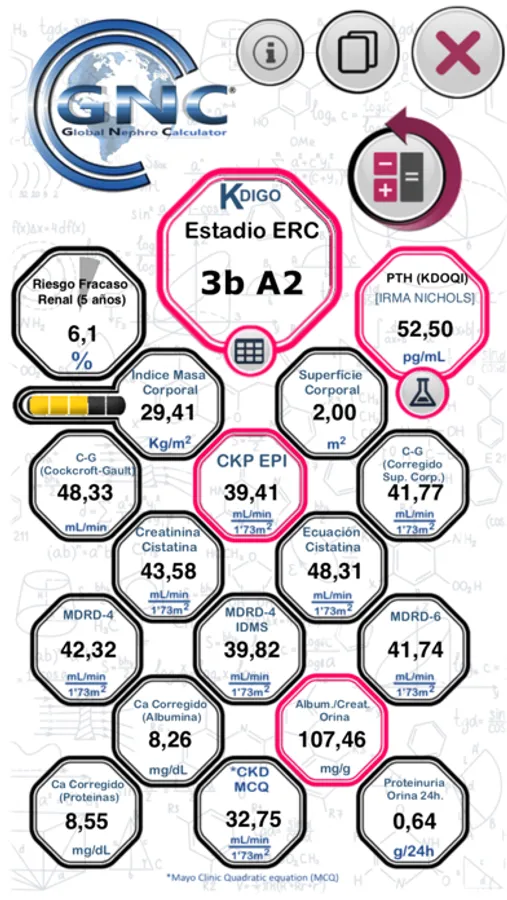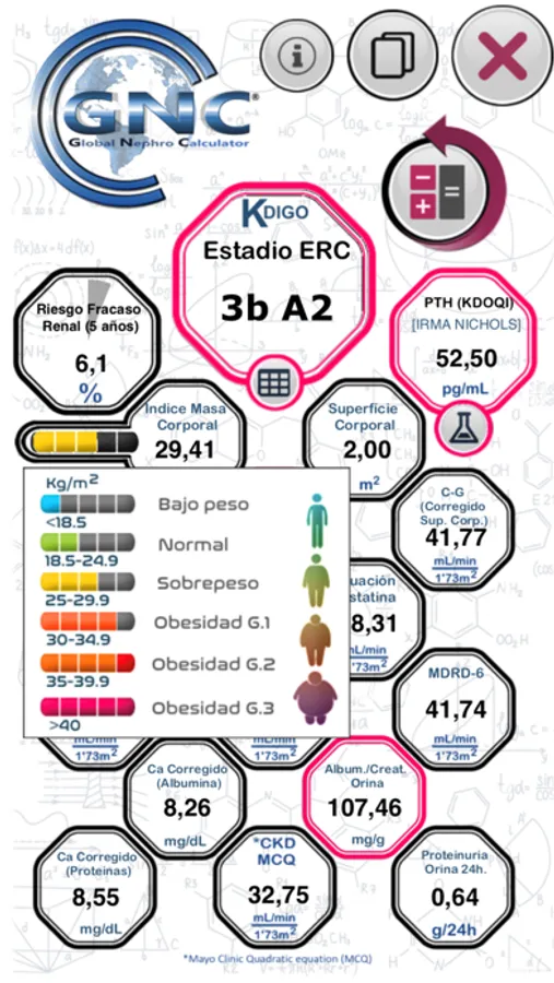 GLOBAL NEPHRO CALCULATOR® es una aplicación que permite el cálculo de variables antropométricas, de función renal y metabolismo óseo-mineral.