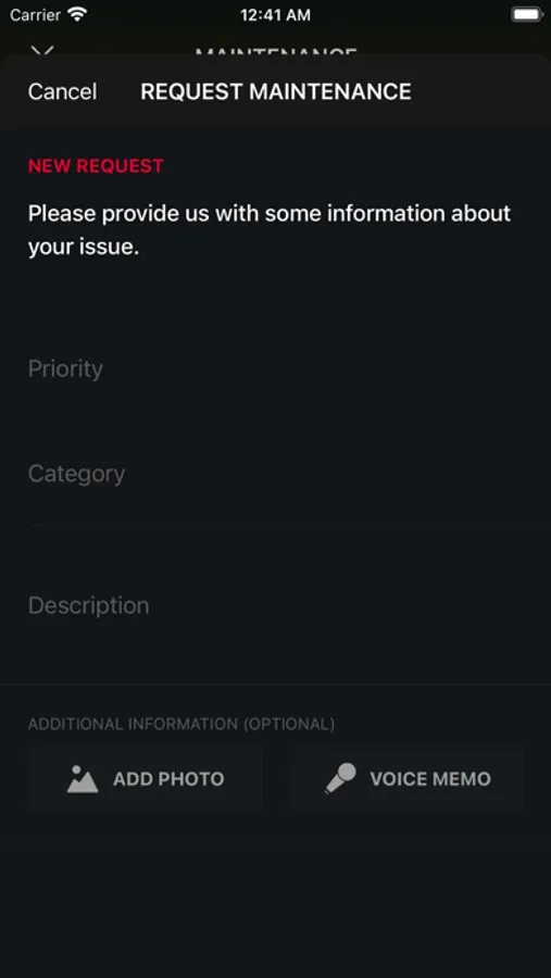 - Submit maintenance requests with detailed information such as photos and (or) a 2 minute voice memo of the issue