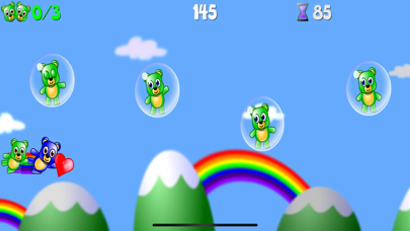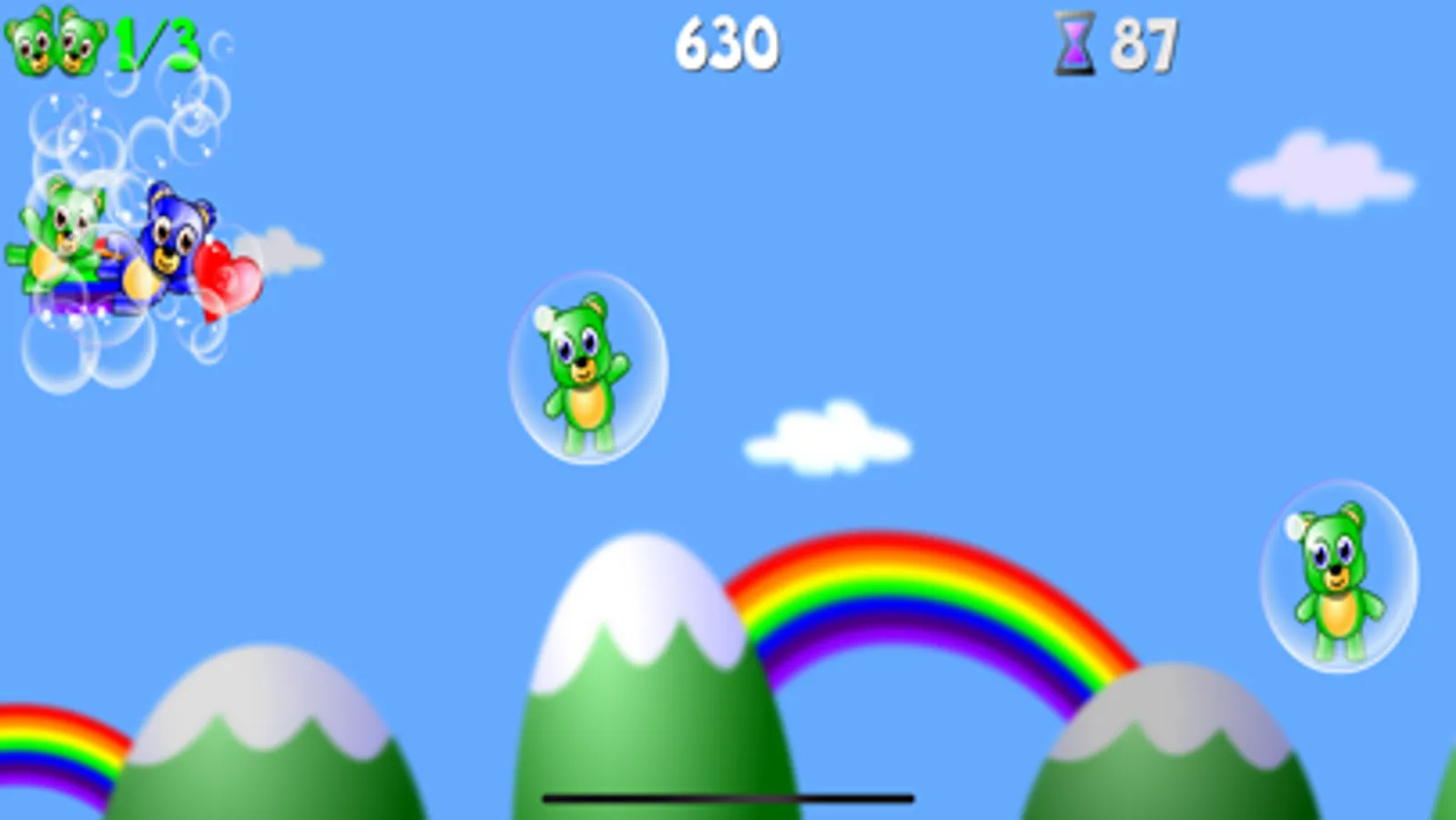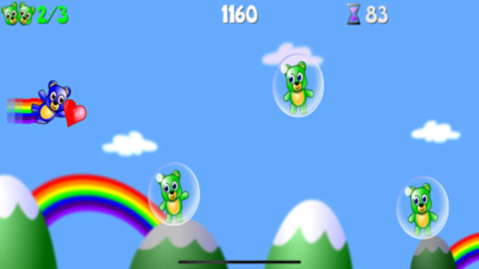 Tap and hold to fly up, release to fly down. Pick up teddy bears trapped in bubbles, and pair them with teddies of the same color.