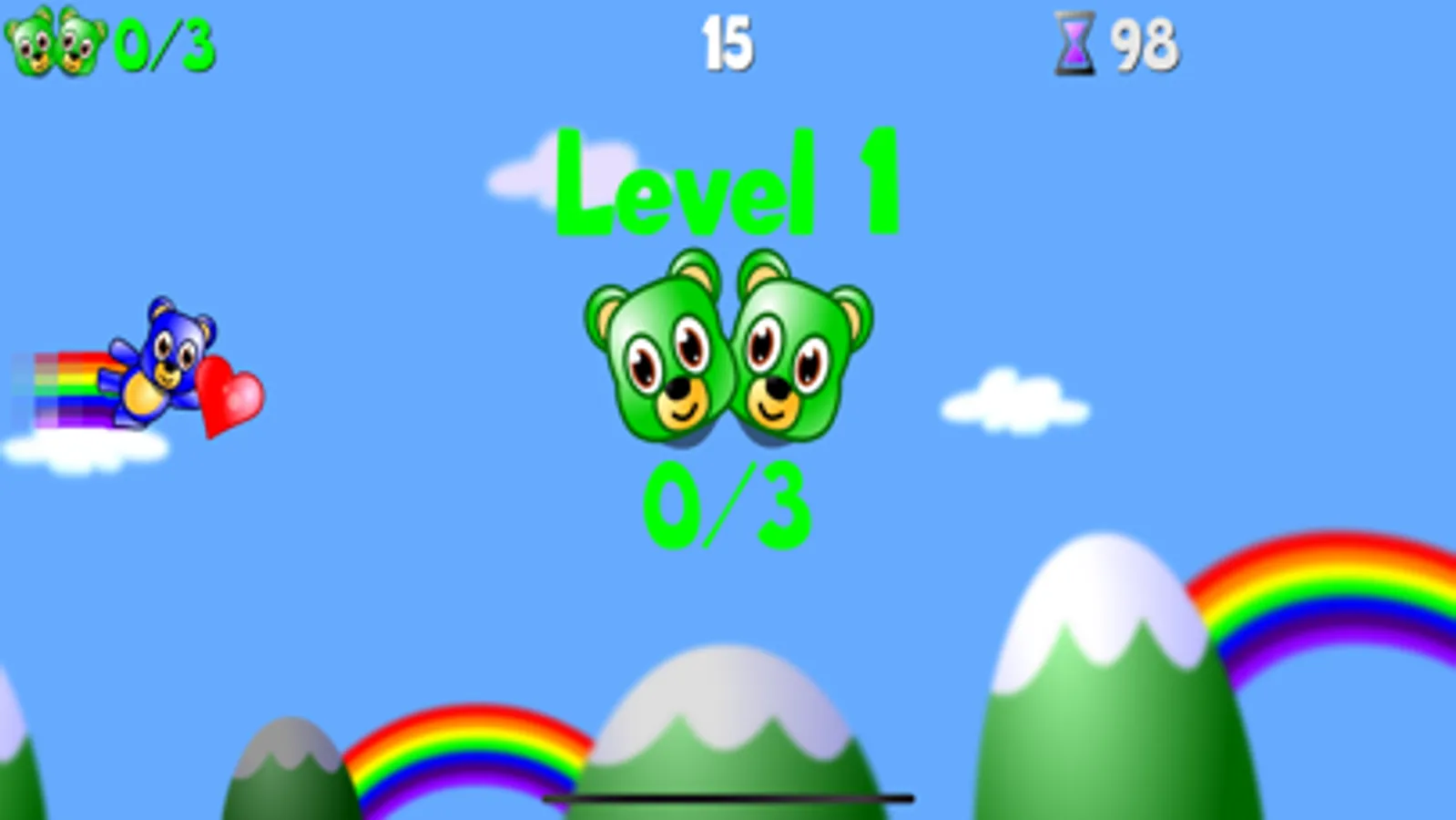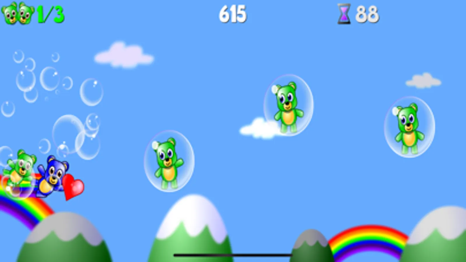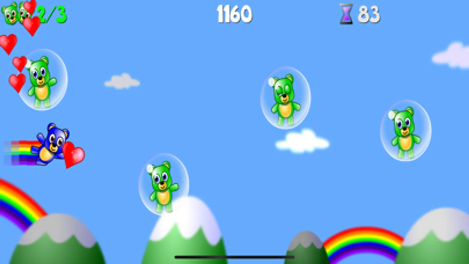 Tap and hold to fly up, release to fly down. Pick up teddy bears trapped in bubbles, and pair them with teddies of the same color.