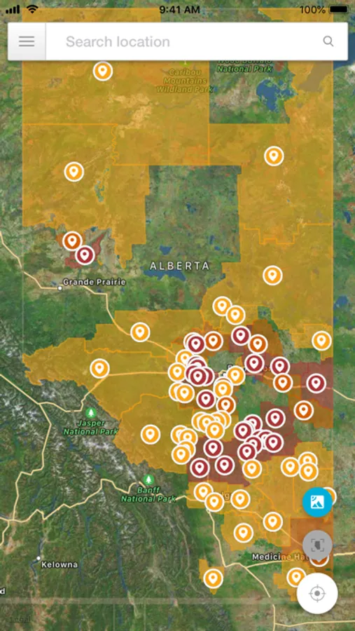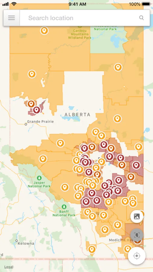 - Robust search bar to help you quickly find any town, city, municipal district, or forested area within Alberta