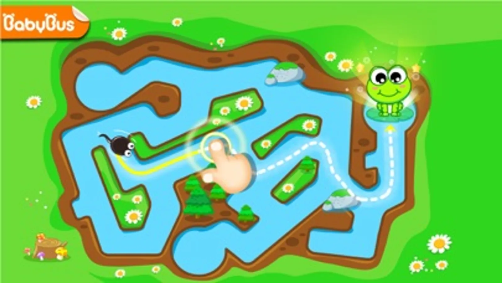 The mother frog left the pond in searching for food, and the new tadpoles are lost in their new environment. Help the baby tadpoles find their mommy!