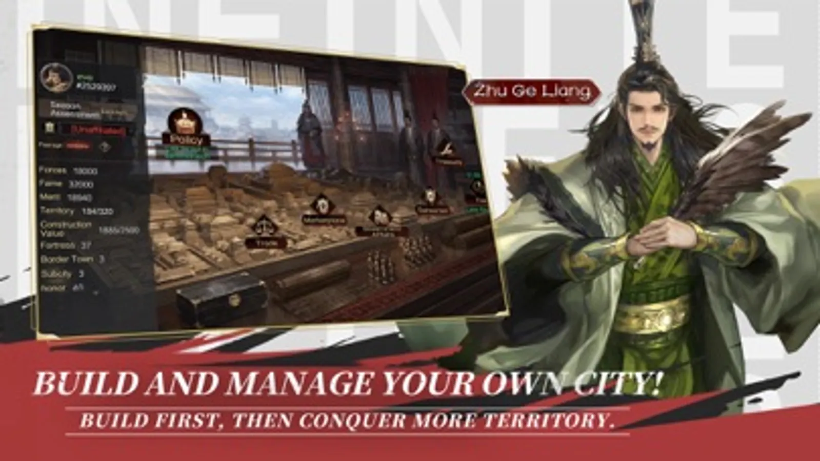 With over 10 millions downloads, Infinite Borders is one of the most popular strategy game in East Asia. When you enter Infinite Borders, you will return to the Three Kingdoms period--a turbulent dynasty in Chinese history, and have a chance to pen your epic. You will play as a lord and fight together with Liu Bei, Cao Cao, Lv Bu and other great Three Kingdoms heroes. Form your unique teams with diverse combinations of generals and tactics to defeat more enemies and conquer more lands. You can make special policies and guide your city into prosperity. In Infinite Borders, to grasp the final victory request not only strength, but also intelligence and strategy.