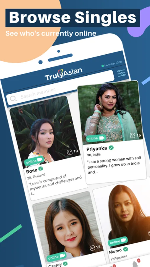 The best Asian dating app. TrulyAsian continually connects people throughout the world with Asian singles from Indonesia, Thailand, The Philippines, Singapore, Hong Kong, and many other Asian countries whenever and wherever. With a large and curated user-base, whether you’re looking for serious relationships or marriage, you’ll surely find your perfect match here.