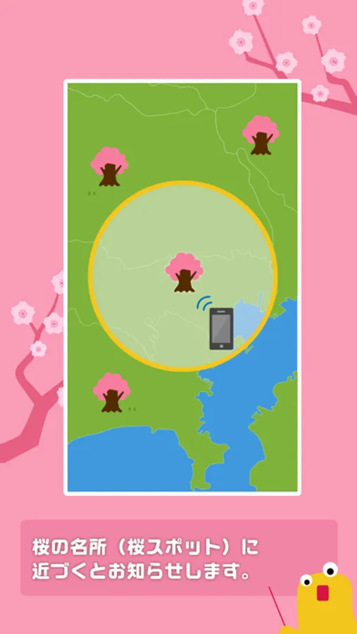 ※ 桜スポット接近通知はバックグラウンド時にGPSを利用するため、通常よりバッテリーを消費する場合があります。