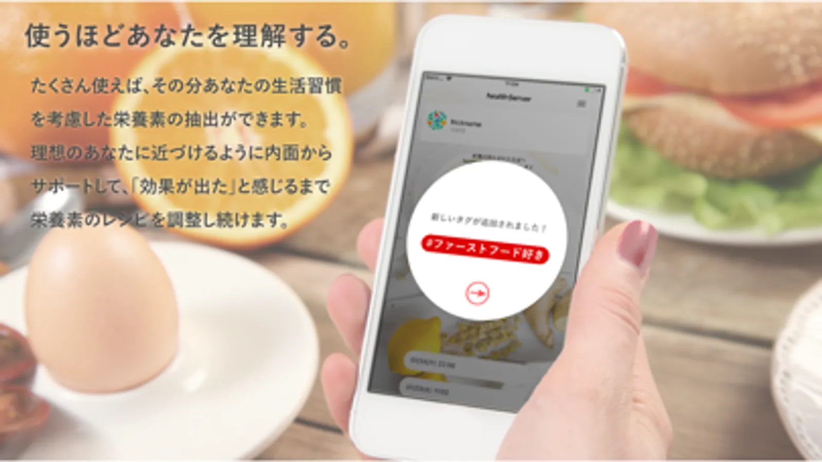 本アプリケーションは、今のあなたに必要な栄養素をオーダーメイドに提供するデバイス「healthServer(ヘルスサーバー)」専用です。